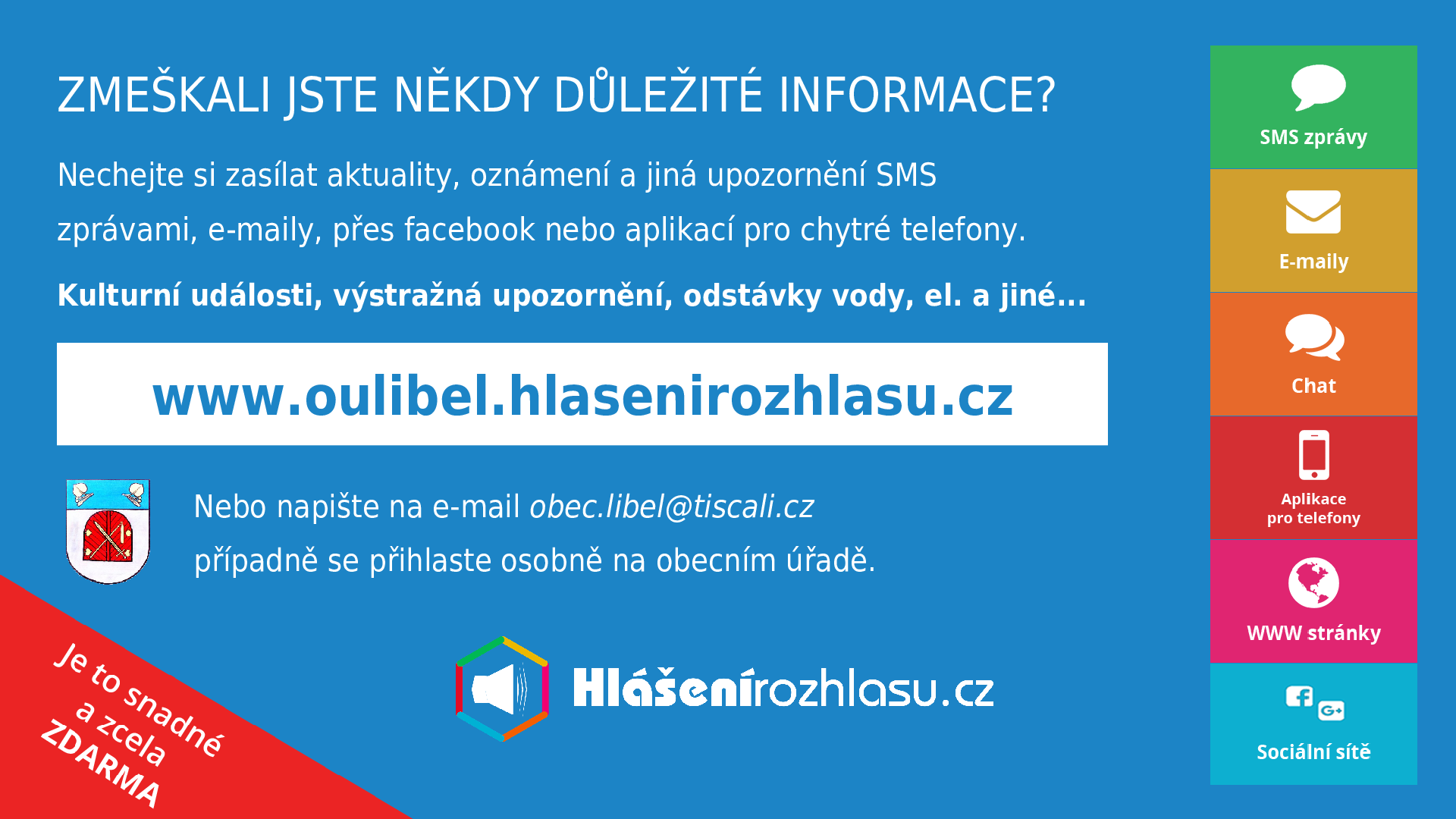 ![]() | Nový způsob informování o aktuálním dění v obciDalší přílohaDalší přílohaDalší přílohaDalší příloha | 14.04.2021 31.12.2030 | Obec Libel | |